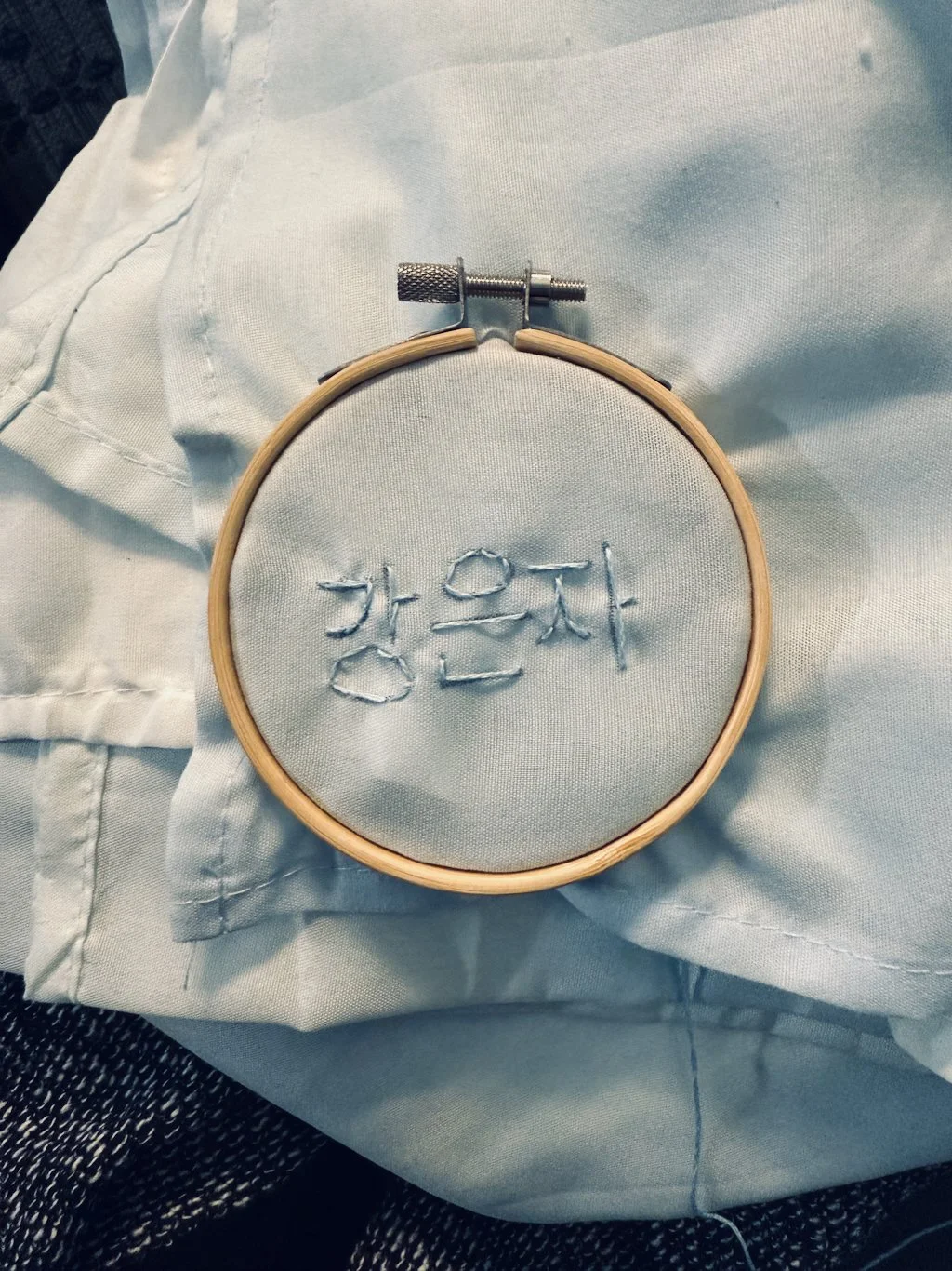 Each sheet bears names hand sewn into their corners. Names of grandmothers, mothers, and matriarchs connected to Ballet Des Moines’ dancers, staff, board members, and community. Together, these sheets form a collective portrait of endurance and care, tethering private histories to shared memory.